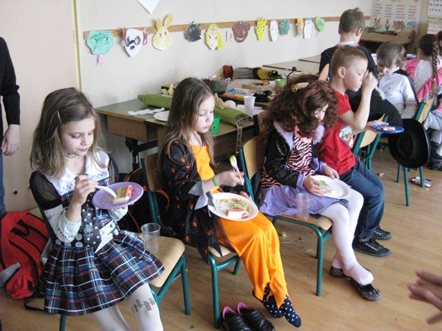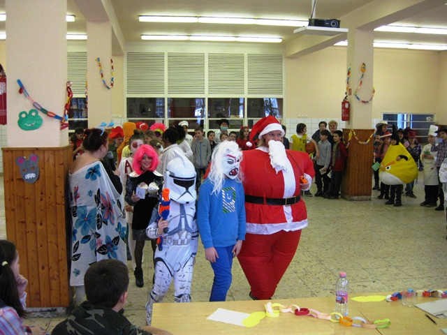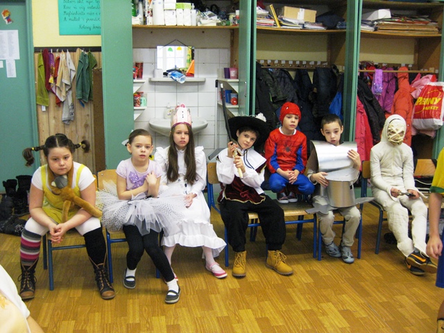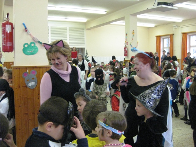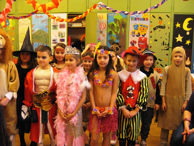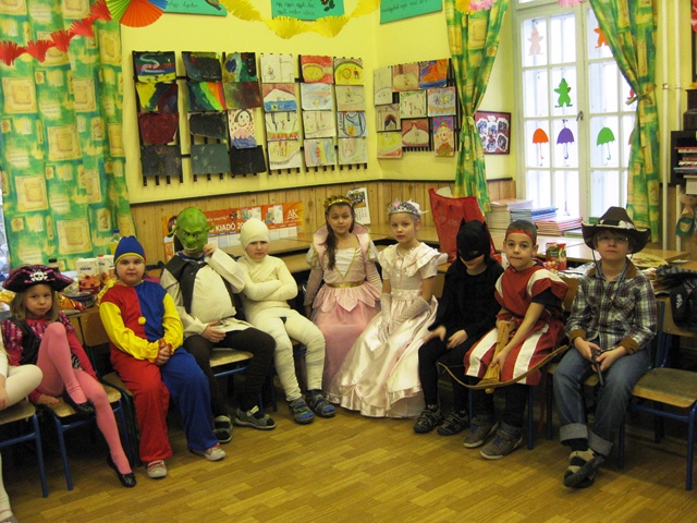 Kicsik és nagyobbak jelmezbe bújtak, ezúttal a tanítónénik is lecserélték hétköznapi ruháikat valamilyen jelmezre. Reggeltől kezdődött a mulatság, az osztályokban az asztalok roskadásig teltek mindenféle finomsággal, a legvidámabb muzsikákkal és a legviccesebb játékokkal vette kezdetét a mulatság.