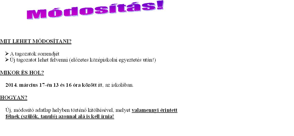 Figyelem továbbtanulás! Módosítás!