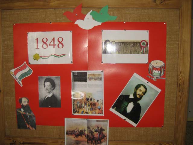 Az 1848/49-es forradalom és szabadságharc 168. évfordulójára nemcsak iskolai ünnepéllyel, de osztálydekorációkkal is megemlékeztünk. Nemzeti ünnepünk tiszteletére az osztályok mellett a folyosón is láthatók az alkalomra készült összeállítások.