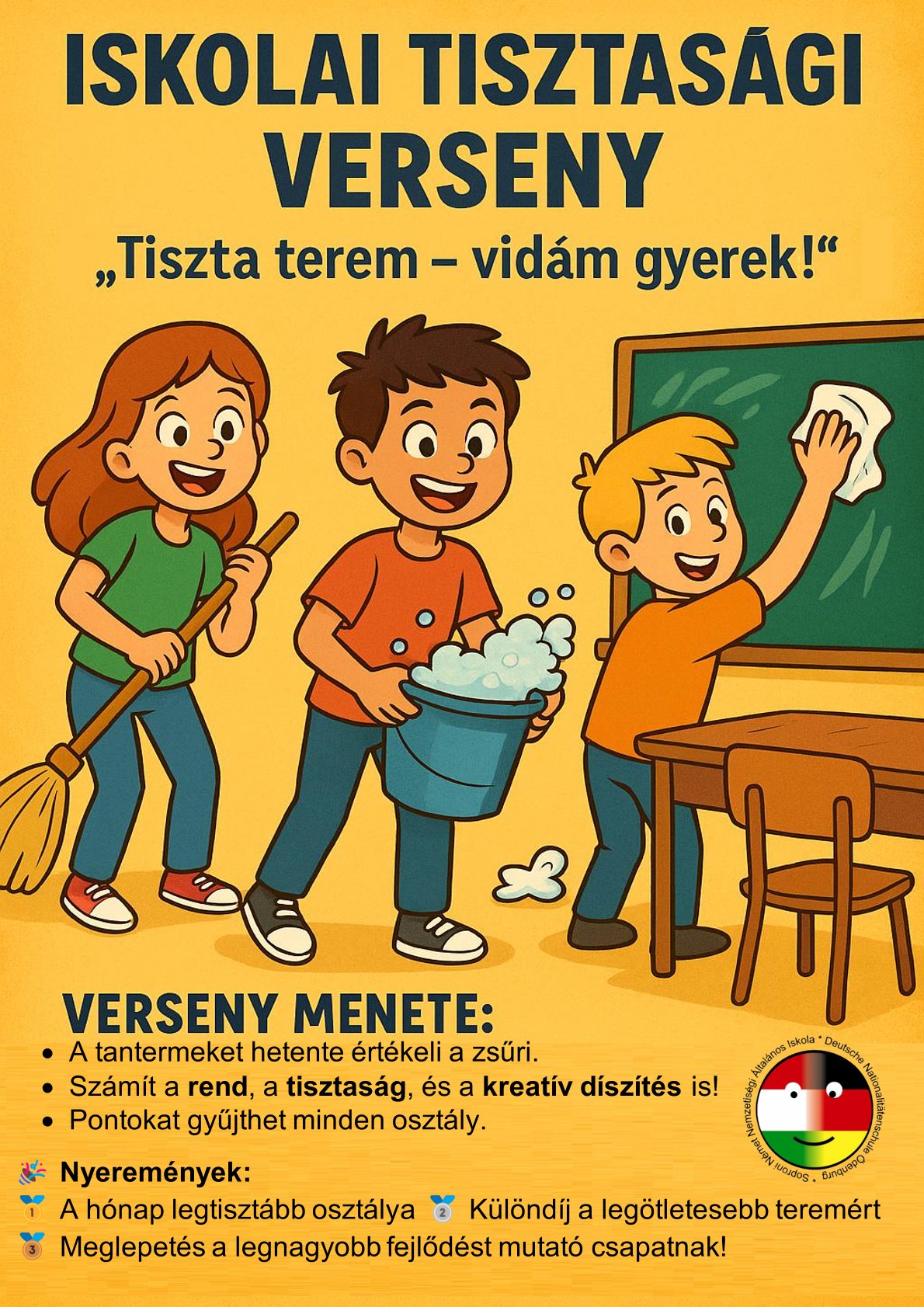 2025. november 10-től tisztasági versenyt hirdet a Levegő Munkacsoport a felső tagozaton „Tiszta terem – vidám gyerek!” címmel. A zsűri szúrópróbaszerűen ellenőriz, minden hét végén összesít, havonta eredményt hirdet. Cél a rend és tisztaság megtartása!