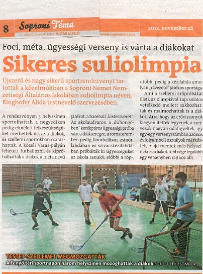 Míg a november 10-i projektnapon az alsósok a Márton-napra készültek, addig Alida néni főszervezésében, de minden felsős tanár és diák aktív közreműködésével diákolimpián vettek részt, melyről a Soproni Téma is tudósított.